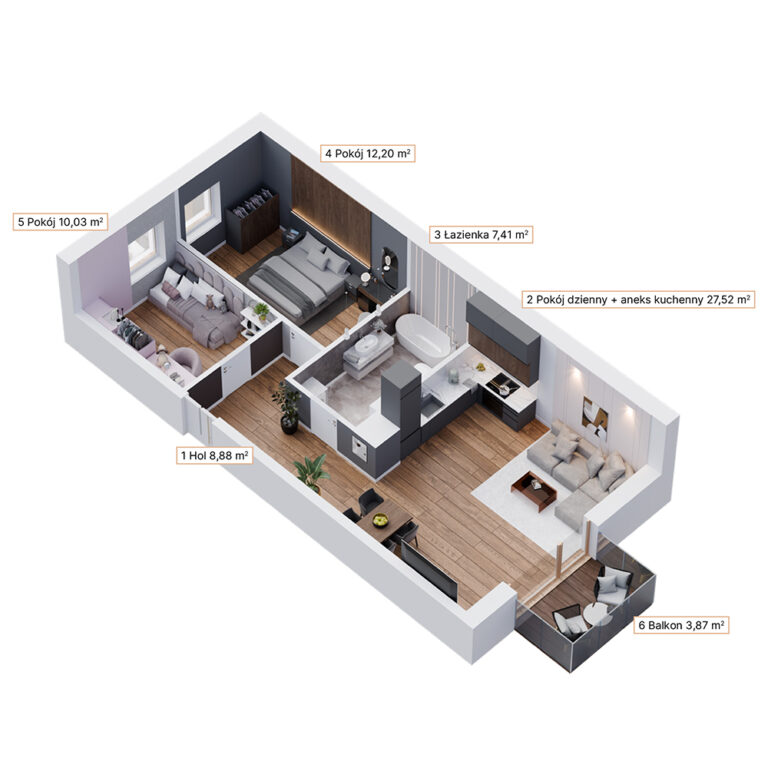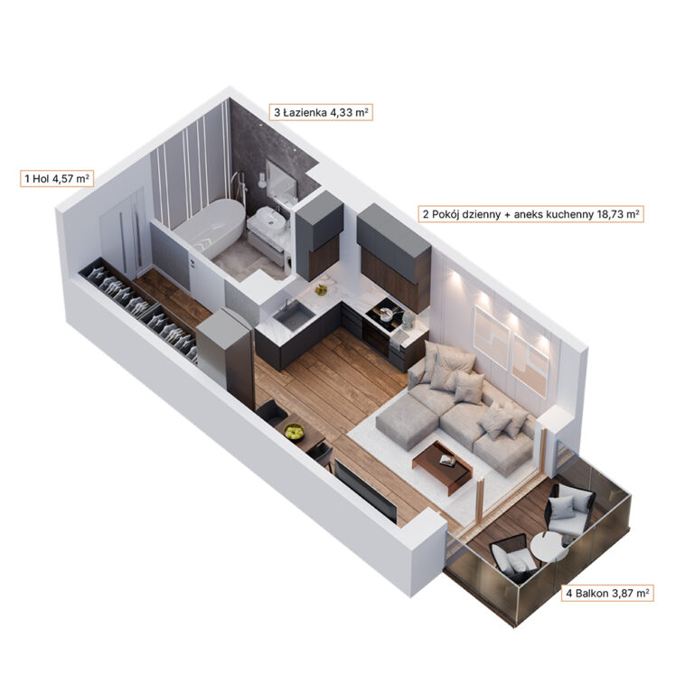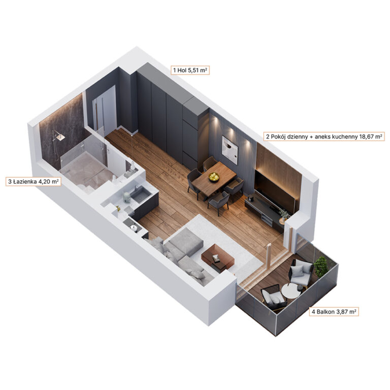 Każde mieszkanie zostało zaprojektowane z myślą o funkcjonalności oraz doskonałym doświetleniu wnętrz. Szeroki wybór metraży – od 25,55 m² – pozwala idealnie dopasować przestrzeń do Twoich potrzeb. Znajdziesz tu przemyślane układy, które ułatwią codzienne życie, niezależnie od tego, czy pracujesz zdalnie, wychowujesz dzieci, czy szukasz mieszkania pod wynajem. Jasne wnętrza, przestronne salony i możliwość wykończenia pod klucz sprawiają, że szybko poczujesz się tu jak u siebie.